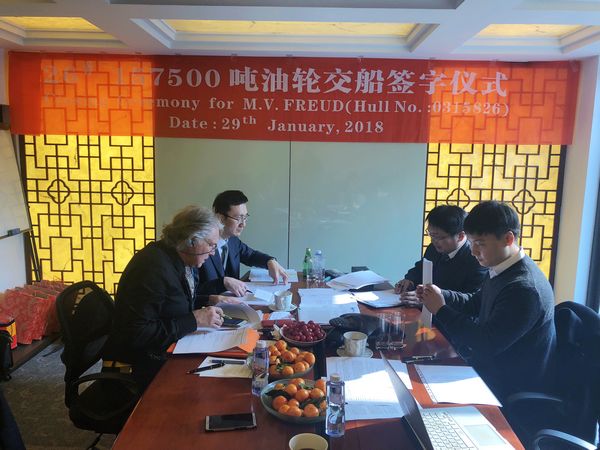 On January 26, 2018, the closing ceremony for No.26 157,500 DWT Crude Oil Tanker was held in Shanghai. Our Executive General Manger Mr. Zhang Yuyong and representatives from Owner Dong-A Tanker attended this ceremony. The delivery documents for this ship were successfully signed by both parties.