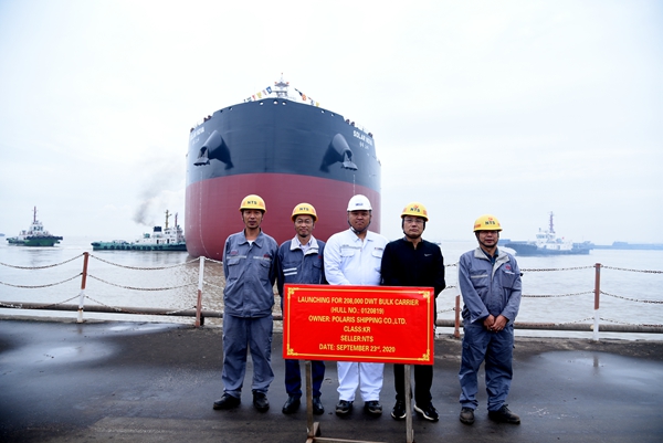 Shipping Co., Ltd.,在我們企業(yè)訂有5艘208000噸散貨船,此次下水是該系列船中的第三艘。