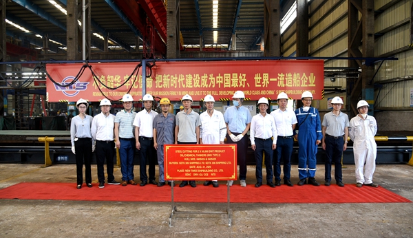8月31日上午,公司在東區(qū)鋼加車間舉行船舶開工點火儀式,24#、25#50000噸成品油船/化學品船同時開工建造,副總經(jīng)理朱韓鋼與船東山東海運公司代表共同出席儀式。